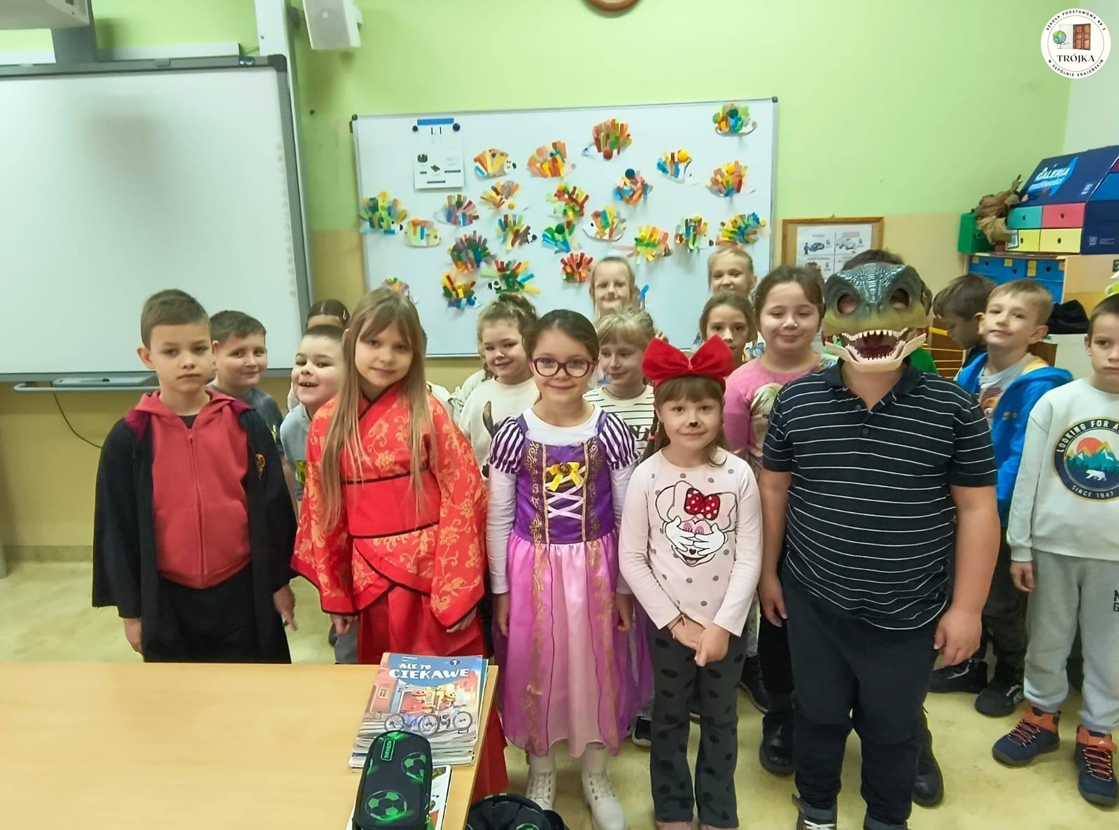Z tej okazji uczniowie klasy 1a odbyły podróż do bajkowego świata. Była prezentacja strojów z ulubionym bohaterem. Dzieci obejrzały bajkę i uczestniczyły w konkursach. Dużo emocji dostarczyła zabawa drużynowa , zgadywanie tytułu bajki. Był to dzień kolorowy i wesoły .