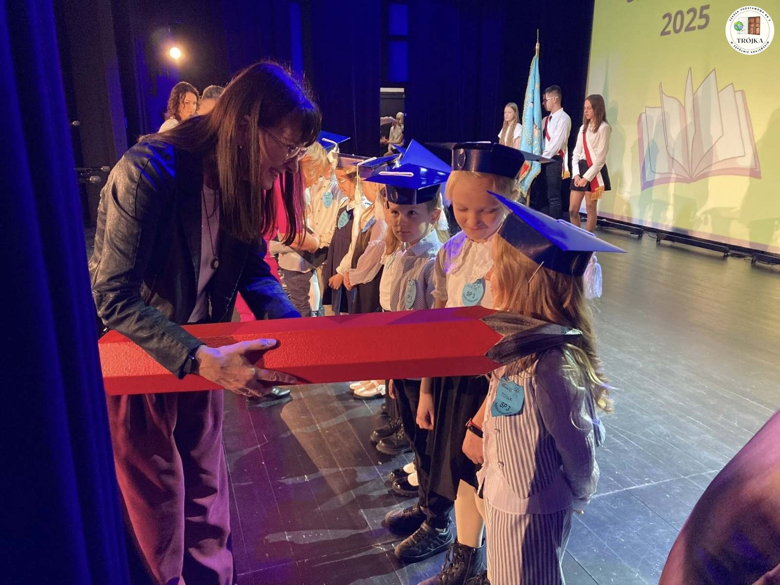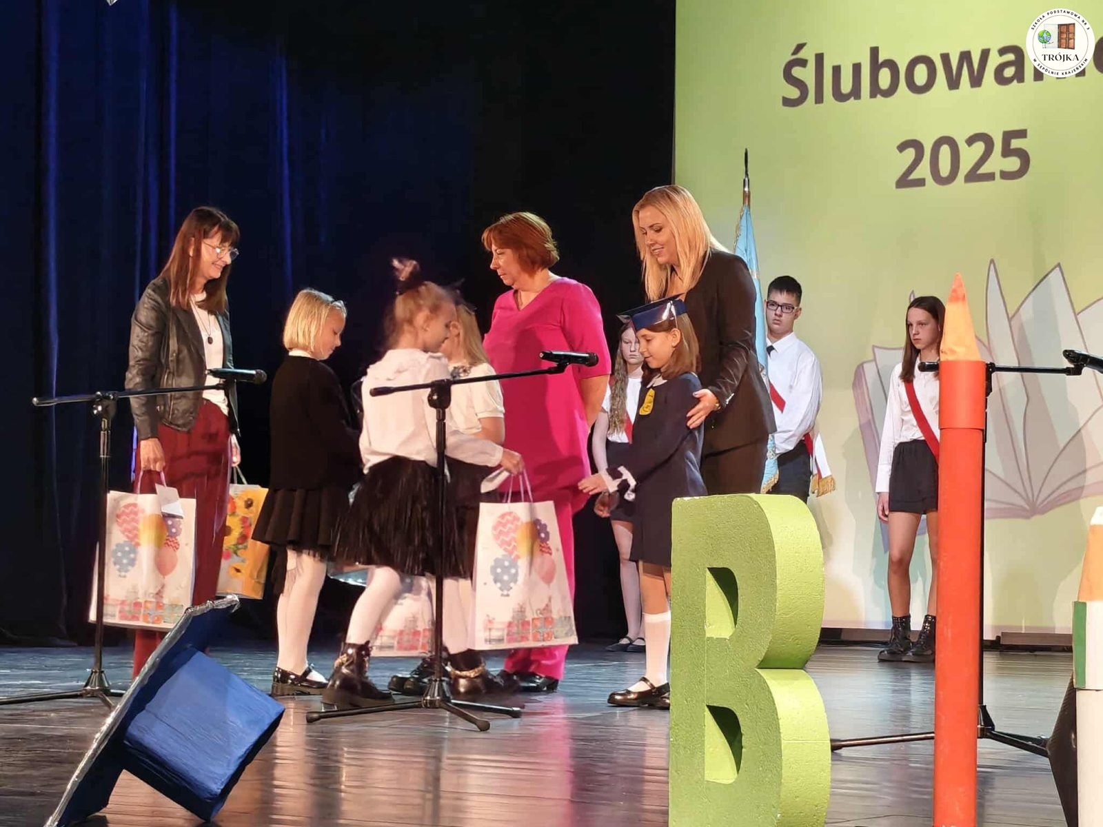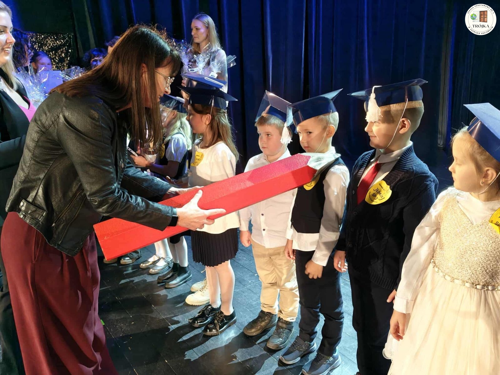 Następnie dzieci zostały pasowane na uczniów przez Dyrekcję szkoły, stając się pełnoprawnymi członkami naszej szkolnej społeczności.