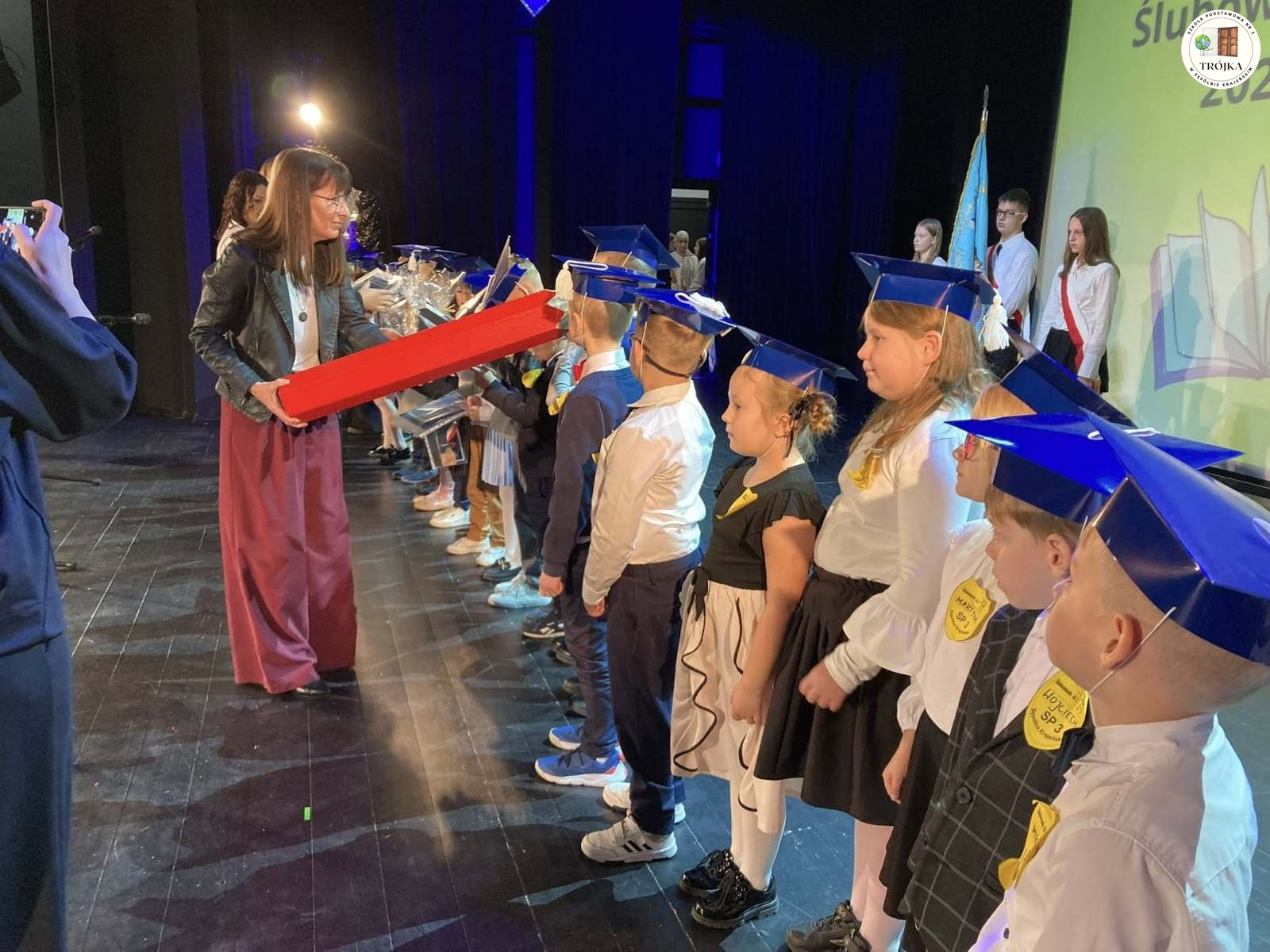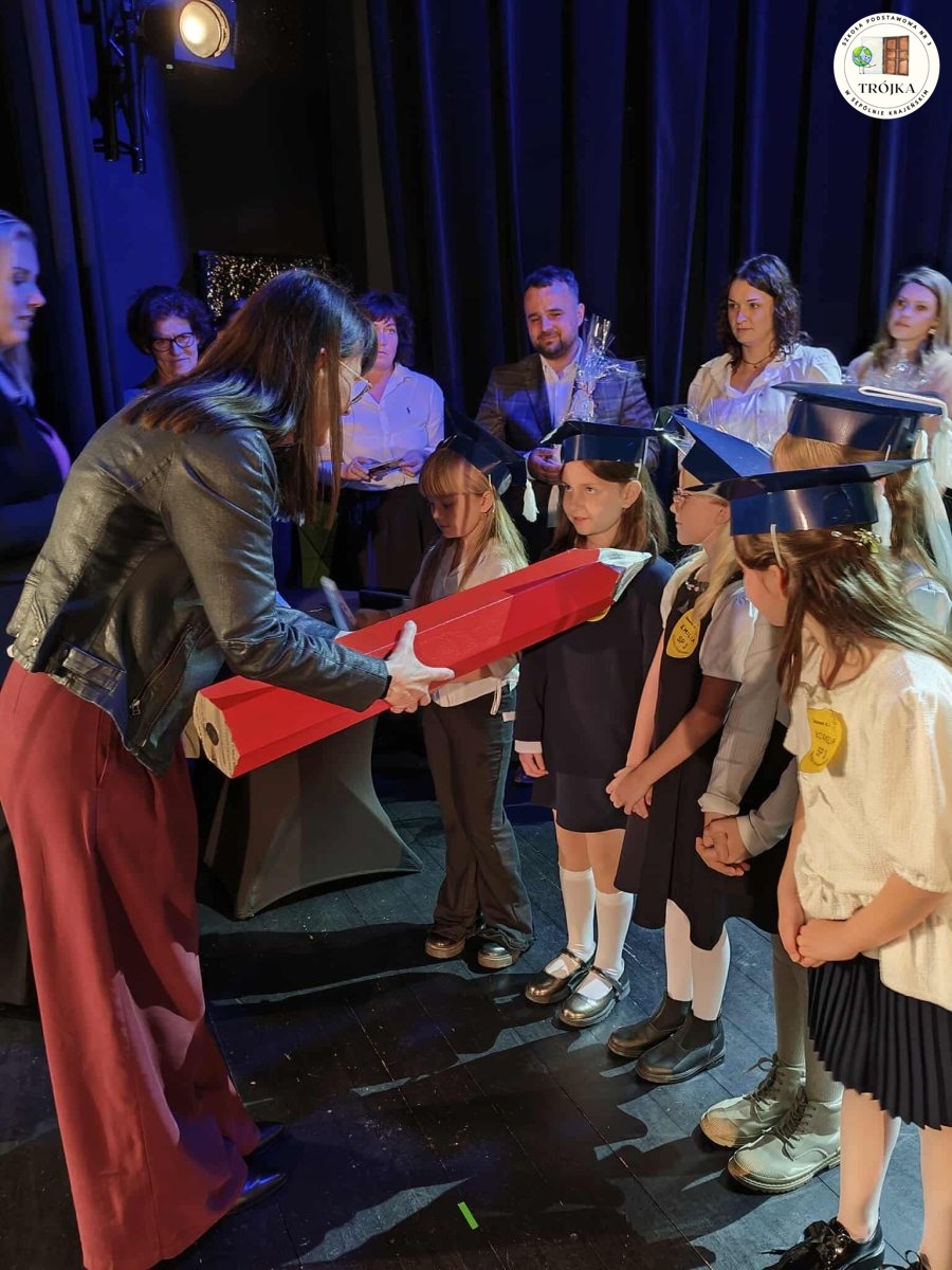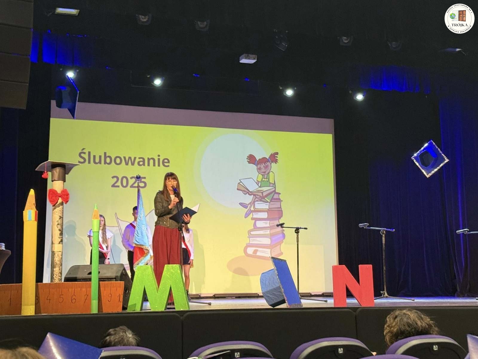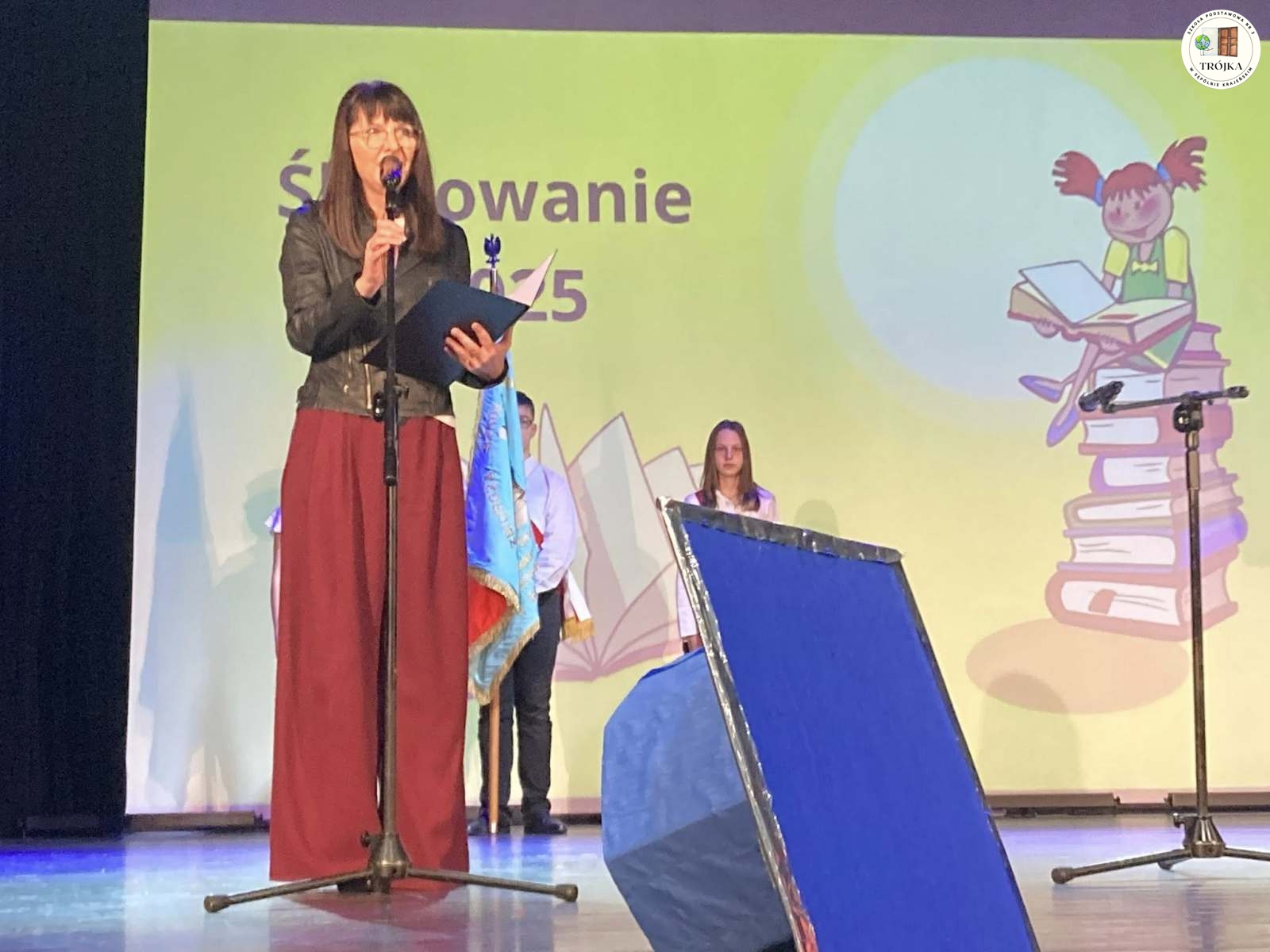 Następnie dzieci zostały pasowane na uczniów przez Dyrekcję szkoły, stając się pełnoprawnymi członkami naszej szkolnej społeczności.